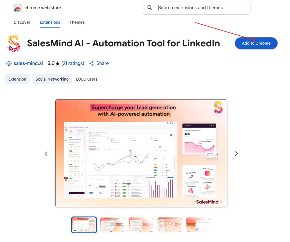 Note*:* Once the extension is installed, make sure you logged in to your LinkedIn account which you want to connect to SalesMind AI, in the same browser.