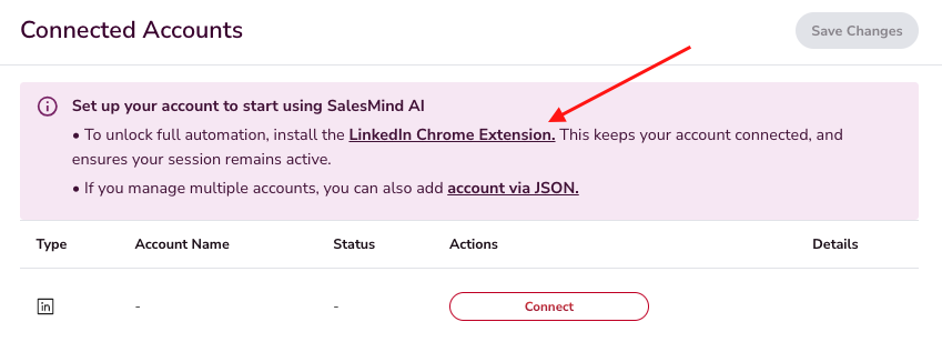 Connecting your LinkedIn account to SalesMind AI allows the platform to automate your outreach safely and effectively. This integration is required for sending connection requests, messages, and running campaigns.