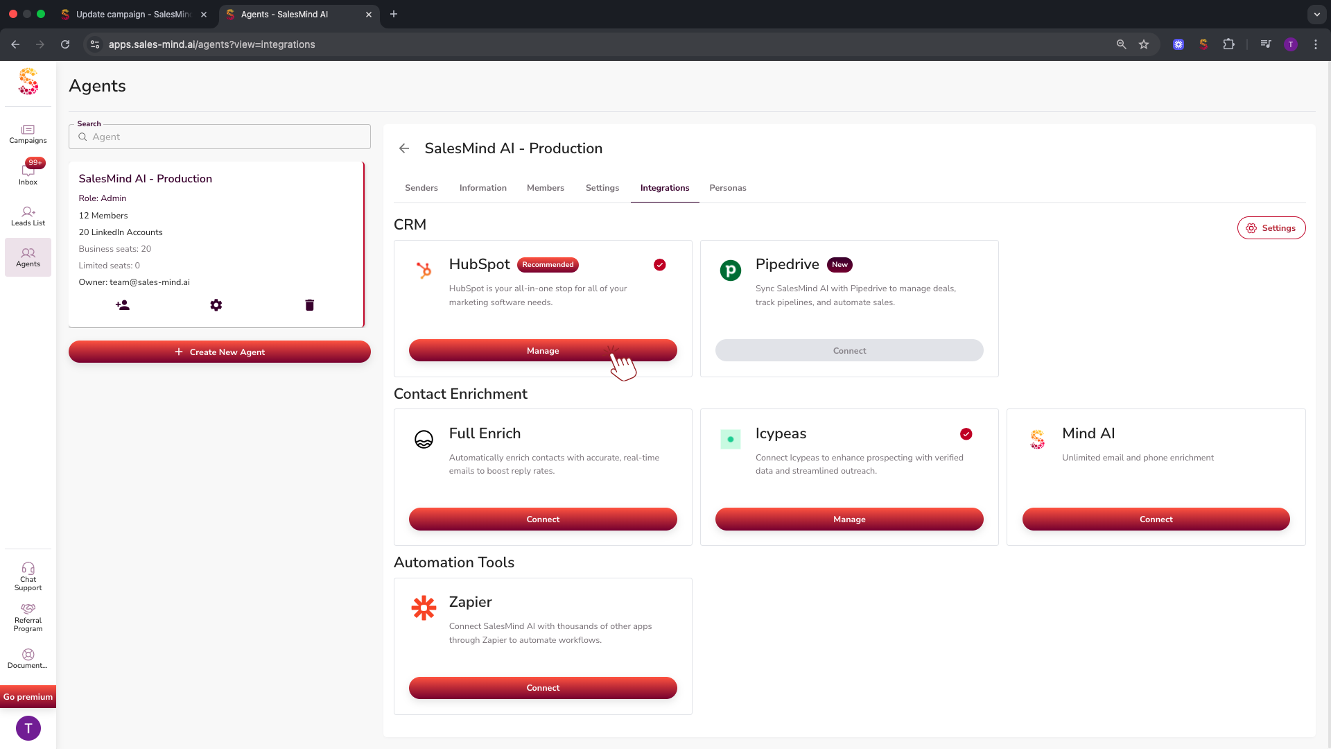 - Pipedrive Integration: SalesMind AI now integrates directly with Pipedrive alongside HubSpot.