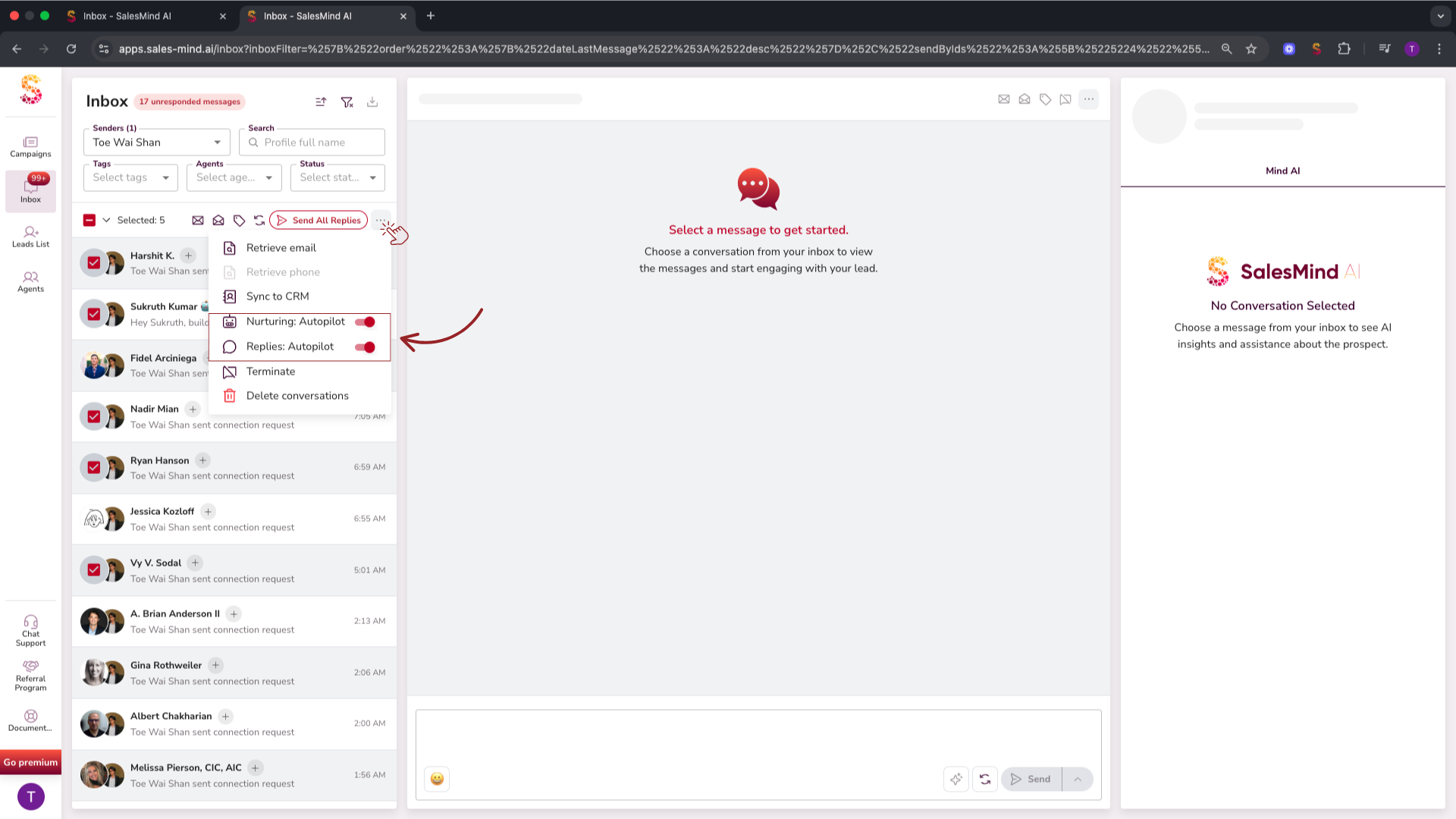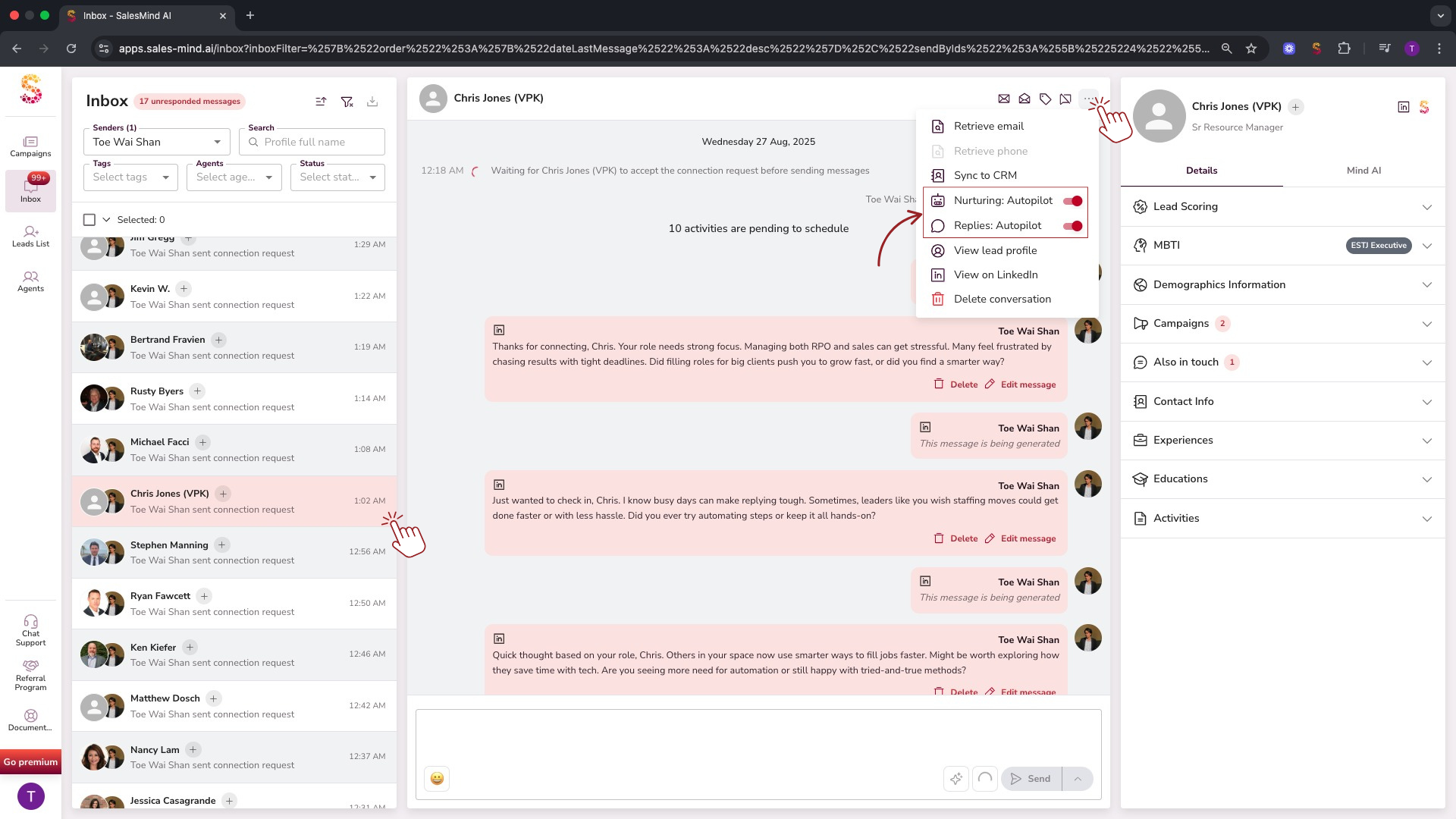 - Autopilot for Single Leads: You can activate or deactivate Autopilot for individual leads directly from your Inbox or the Campaign > Leads tab. This is perfect for personalizing your automation on a case-by-case basis.
