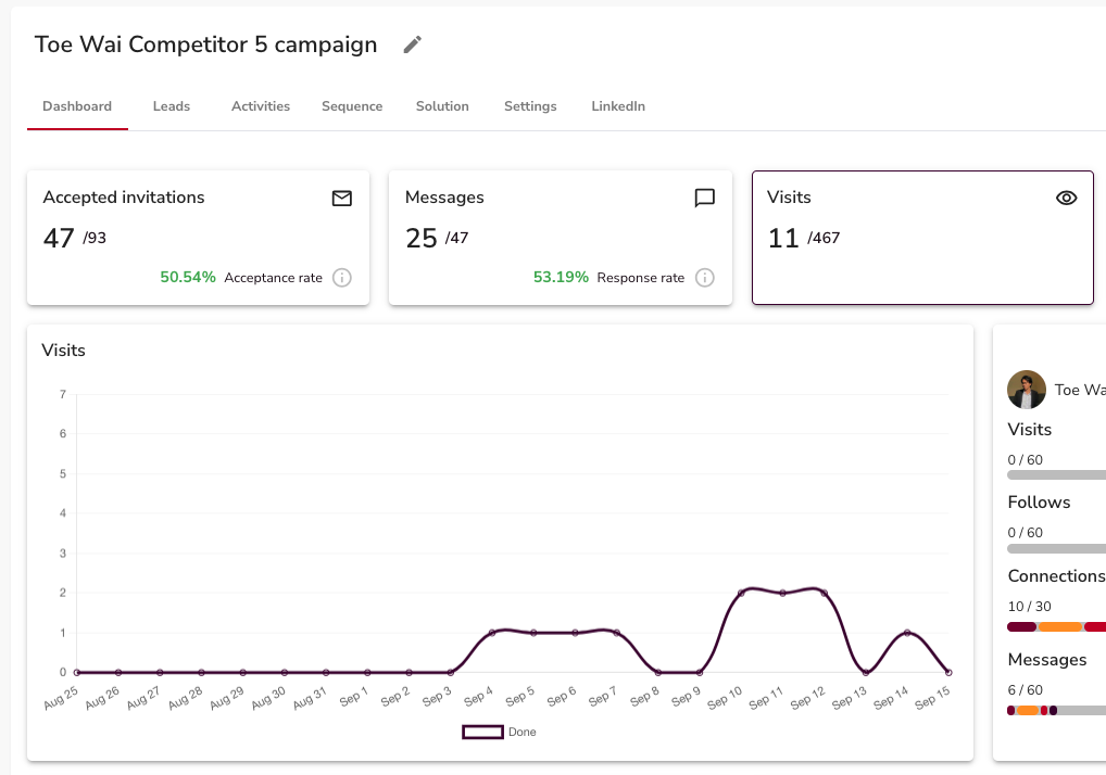 Invitations Accepted: How many prospects connected.