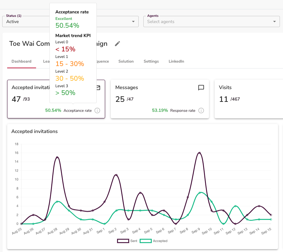 - If acceptance drops below 30%, adjust targeting or messaging