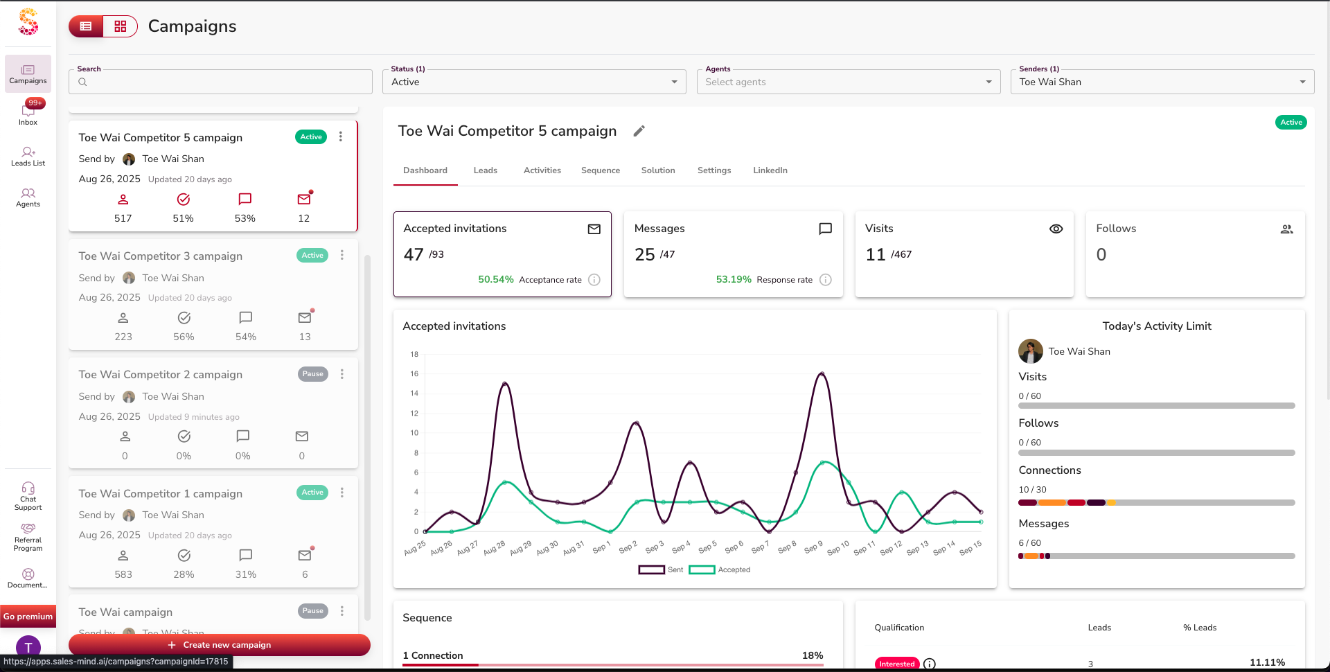 Welcome back! Once your campaigns are running, the Campaign Dashboard is your main control center. This is where you measure performance, spot trends, and make improvements so your outreach gets better every day.