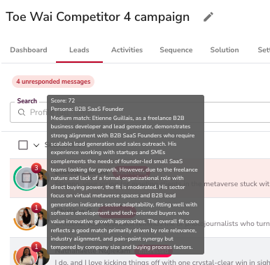 SalesMind AI scores every lead. The score tells you how well a lead matches your persona.