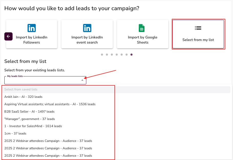 ✅ Importing by Existing List is the fastest way to launch new campaigns with leads you already know are relevant.
