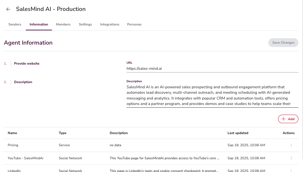 Use Accurate Agent Data: Keep company info, website, and personas correct for better AI messaging.