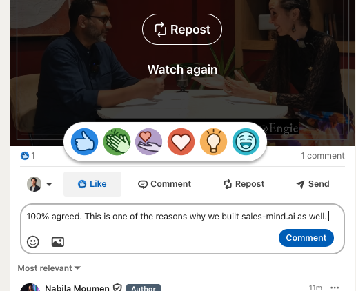 - Engagement: Like and comment on your prospects’ posts to create extra touchpoints and notifications.