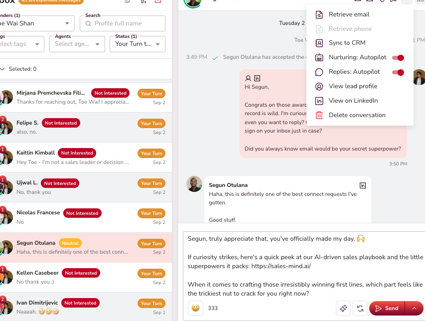 - Autopilot: AI replies directly within 3 to 10 minutes to keep conversations moving.