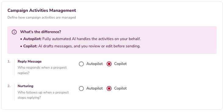 - Use Copilot or Autopilot to handle replies and keep leads engaged.