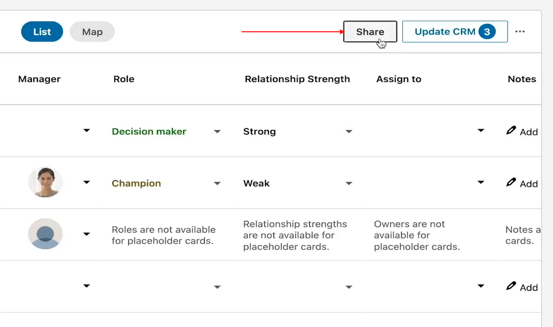 - Share your Relationship Maps with colleagues to coordinate multi-threaded outreach.