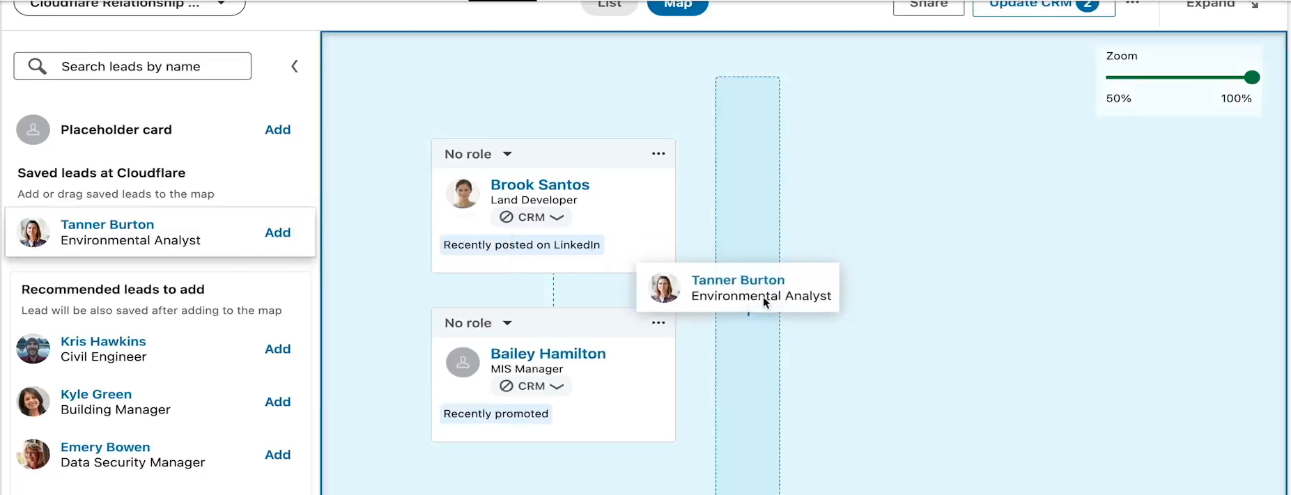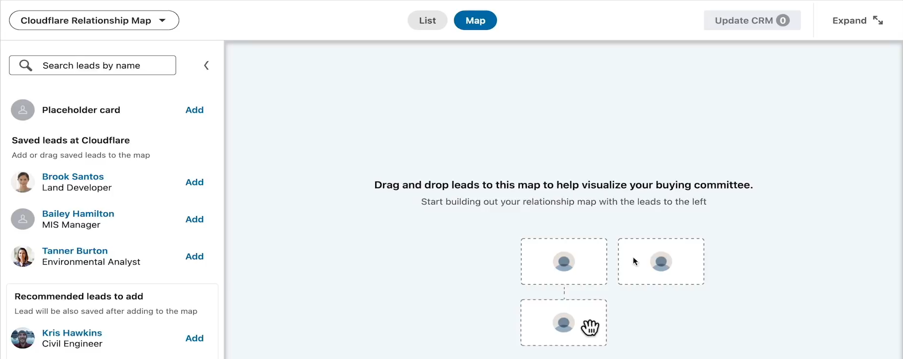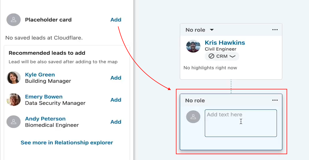 - Click Add to Relationship Map below a lead’s profile.