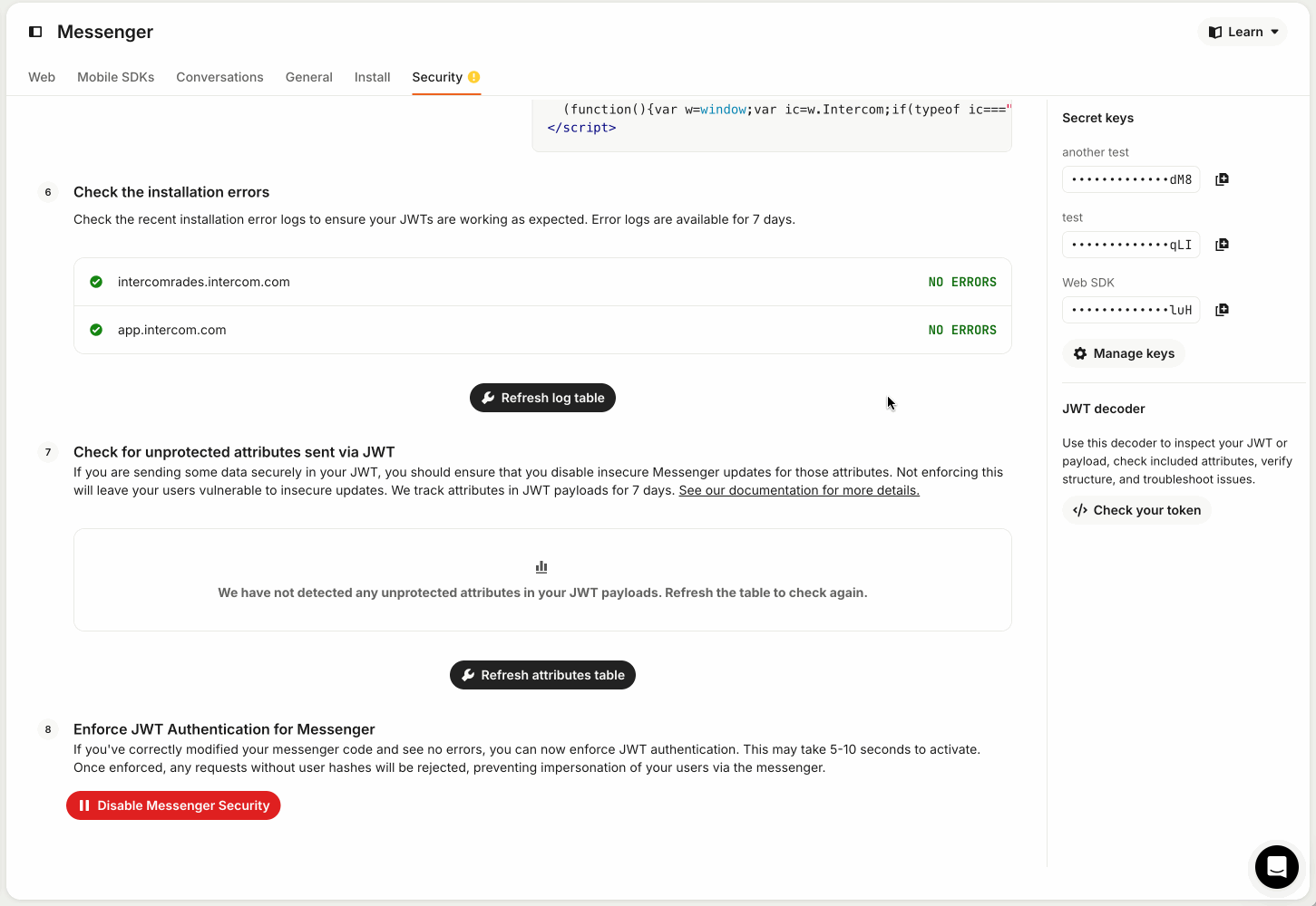 - Always secure your Intercom Messenger with JWTs.