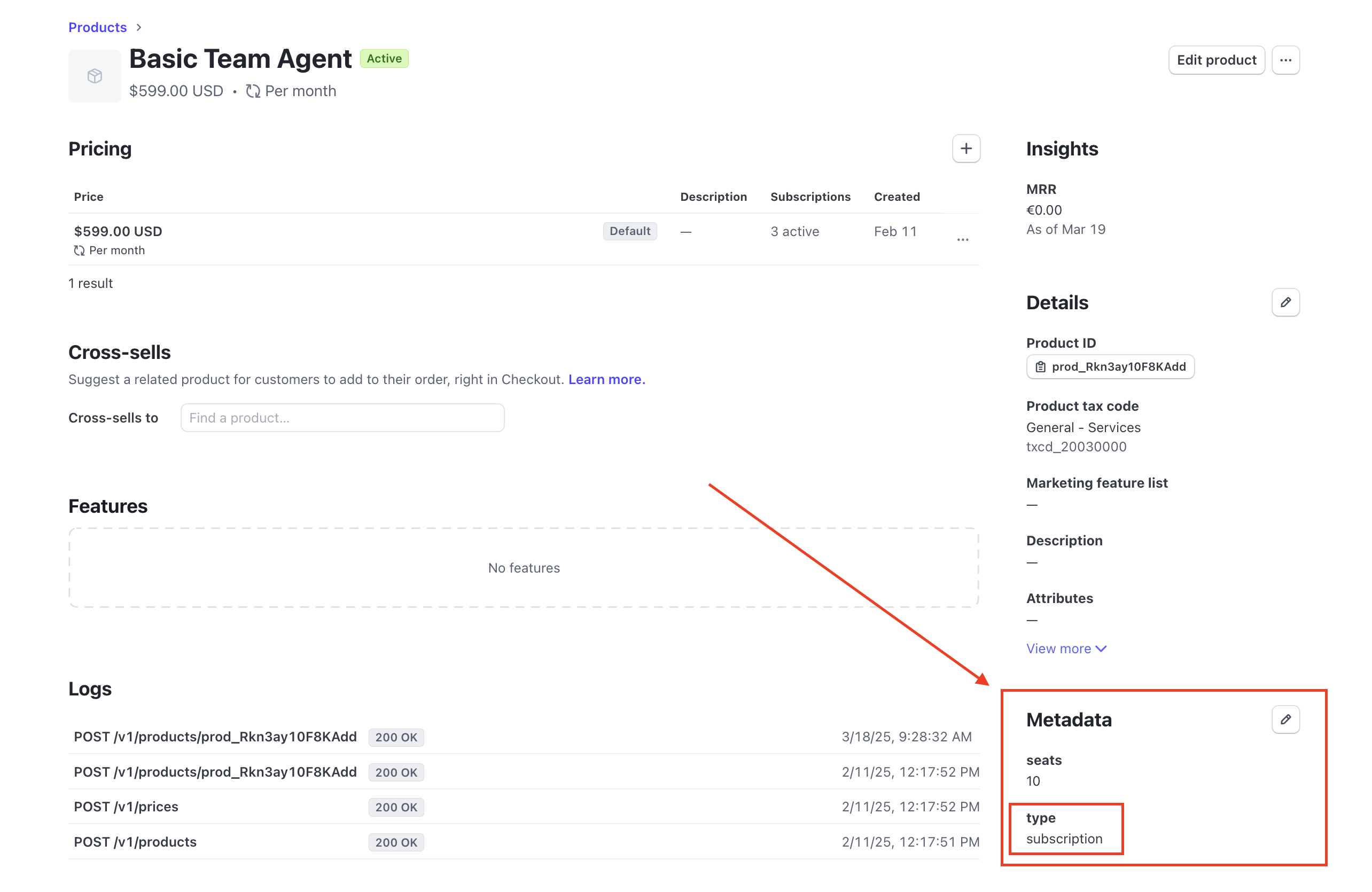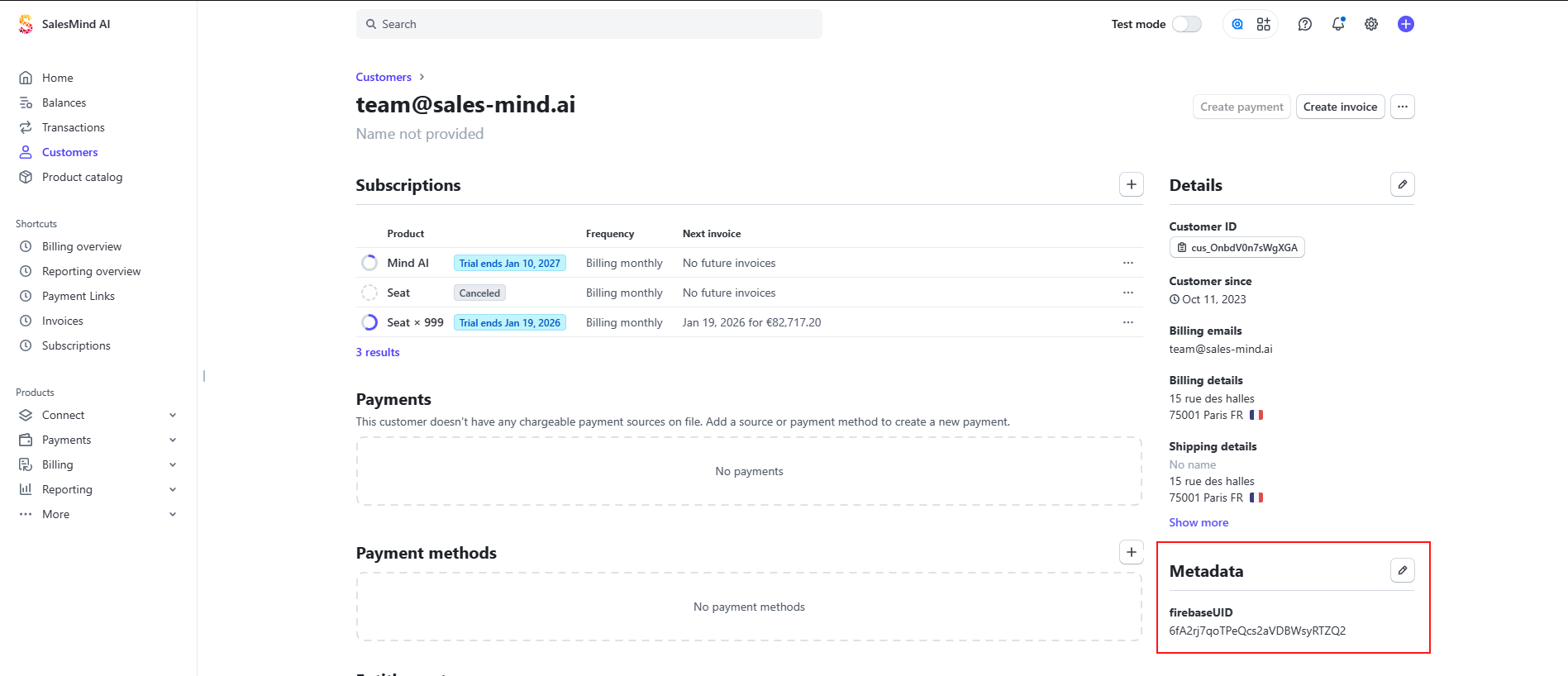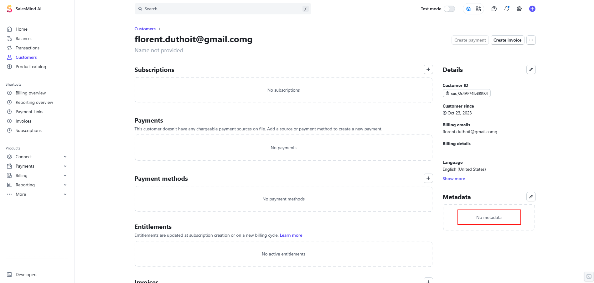 By correctly setting metadata in Stripe, your SalesMind AI whitelabel app will: