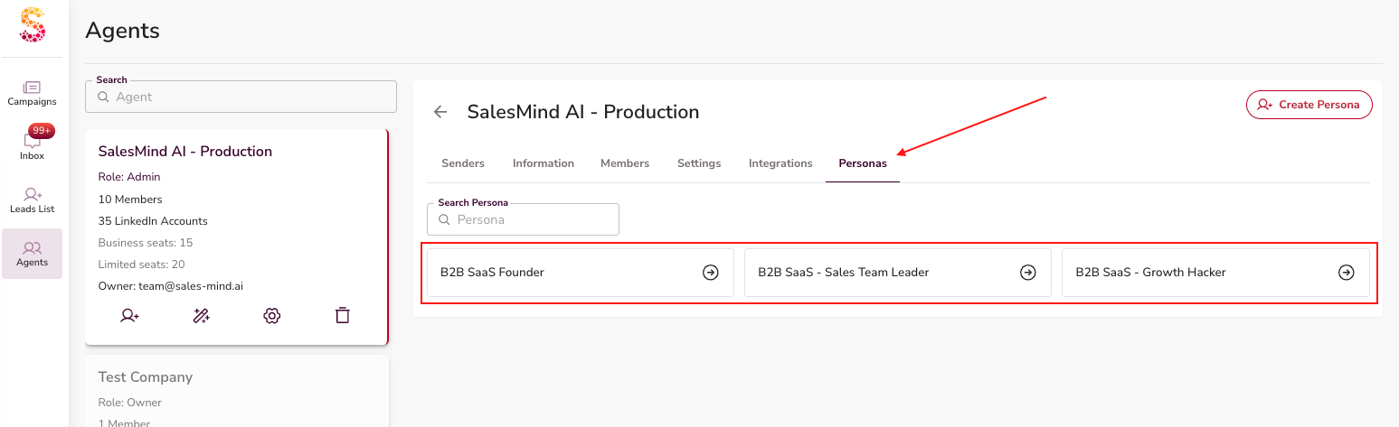 - Personas: Pre-created buyer personas are available in the Personas section.