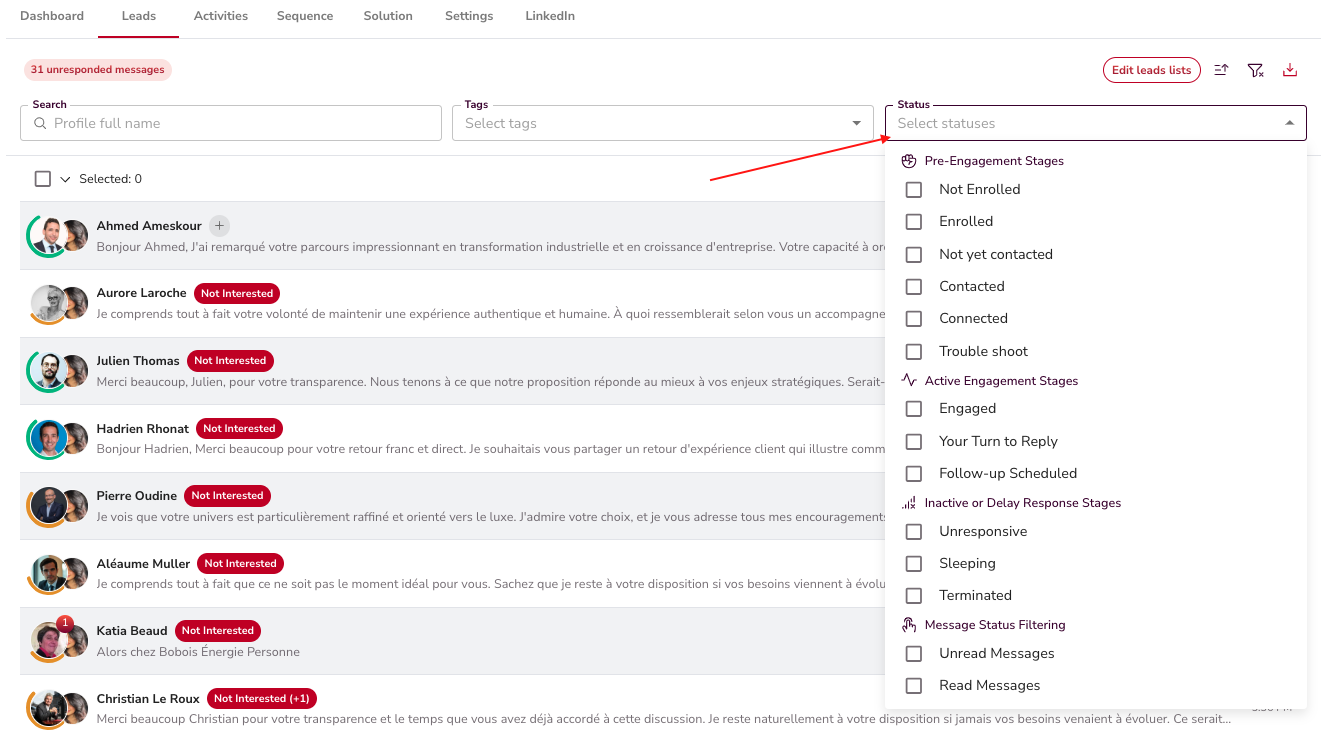- Qualification: “Interested” leads are identified automatically.