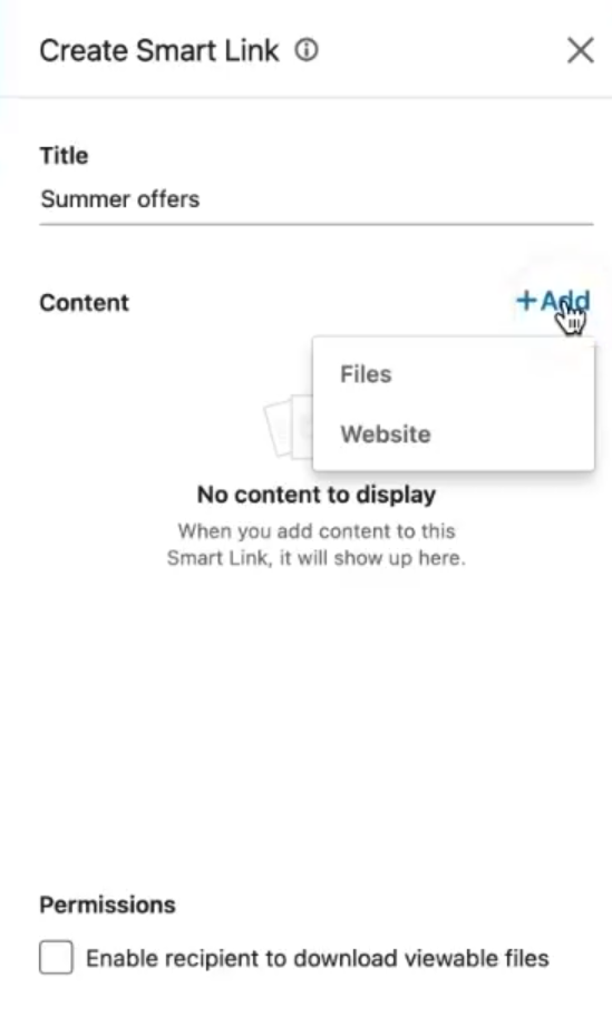 - Add your content - such as PDFs, case studies, or website links, and customize the link title.