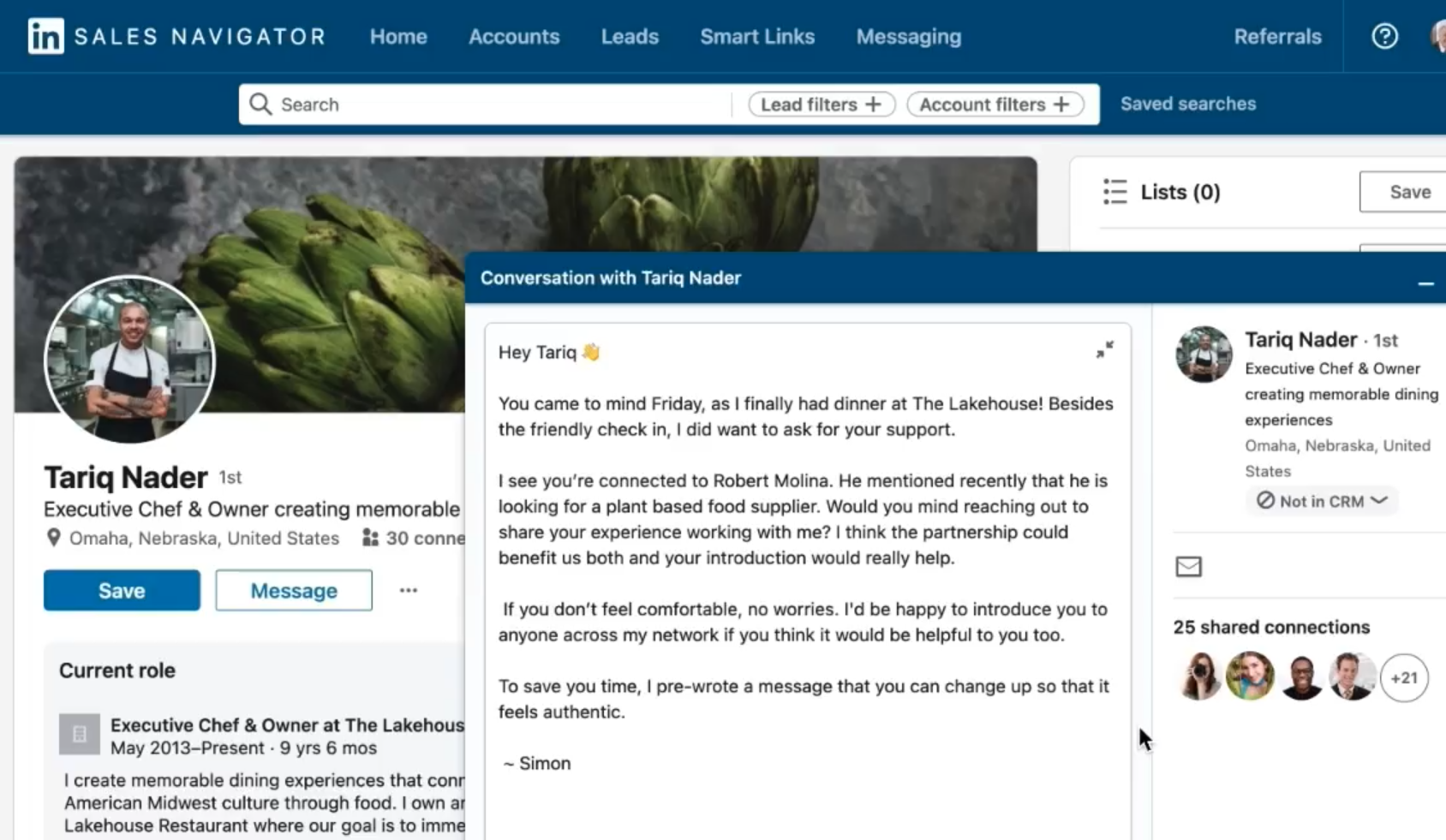 One of the fastest ways to engage prospects is through Warm Referrals. LinkedIn Sales Navigator helps you identify shared connections who can introduce you to key decision-makers.